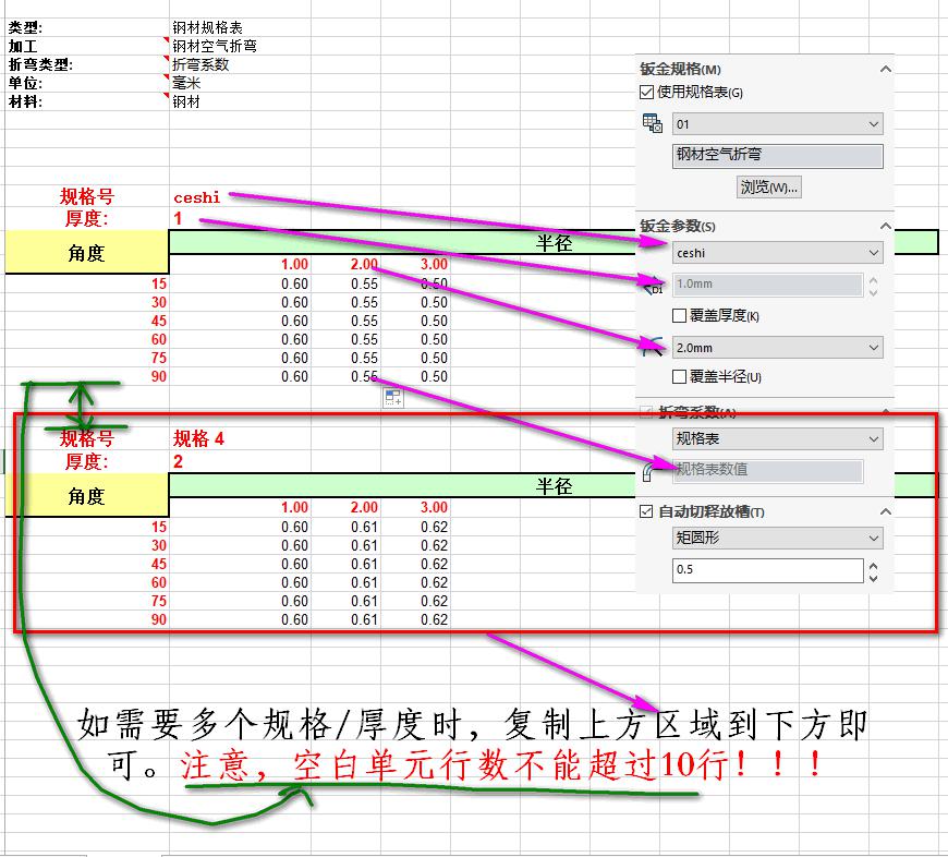 以上幾種方式都可以基于經(jīng)驗(yàn)或者材料供應(yīng)商進(jìn)行獲取相關(guān)信息,來(lái)獲得更接近于真實(shí)下料尺寸的參數(shù),如鈑金類零件較多,材料規(guī)格較多時(shí)可能重復(fù)設(shè)置,且存在選錯(cuò)的概率。為了解決這一問(wèn)題SOLIDWORKS的折彎系數(shù)表可以很好的解決此類問(wèn)題,選取相應(yīng)的規(guī)格型號(hào)后即可自動(dòng)輸入需要的參數(shù),減少錯(cuò)誤的發(fā)生。